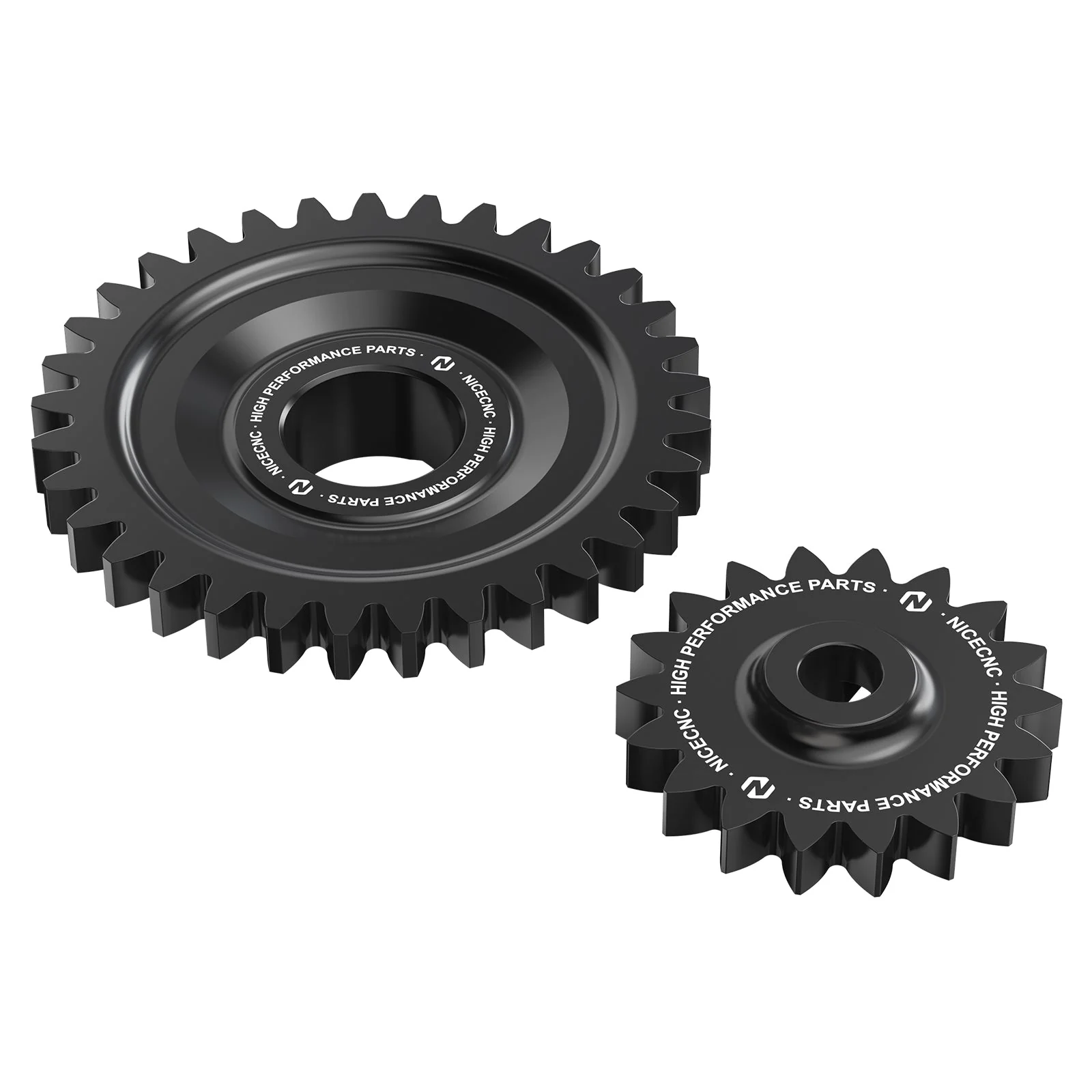 - CNC-gefräste Zahnräder aus Flugzeugaluminium 7075, die in stark beanspruchten Bereichen hartanodisiert sind. Diese metallverstärkten Zahnräder sind von hoher Qualität und haben sich im Rennsport bewährt.