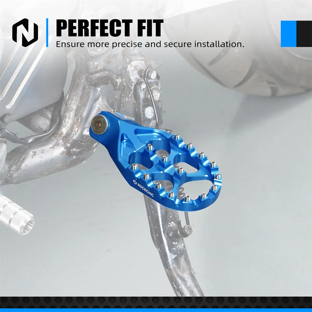 - Positionseinstellung – Die Fußpedalposition ist im Vergleich zum Originalfußpedal nach unten abgesenkt. Dieses versetzte Design hilft Fahrern, das Motorrad während der Fahrt besser auszubalancieren, insbesondere wenn eine präzise Kontrolle erforderlich ist oder wenn sie mit komplexem Gelände konfrontiert sind, und sorgt für eine stabilere Fahrhaltung.